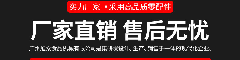 廣州旭眾食品機械有限公司是一家集科研開發(fā),生產設計,營銷服務為一體的現(xiàn)代化生產企業(yè)。現(xiàn)代化生產車間,精湛制造技術,所產機械歷經市場重重考驗,不斷贏得海內外客戶的贊譽。