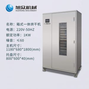 名稱箱式一體果蔬烘干機 電源220V-50HZ 功率1KW 產量聯系銷售員 尺寸1180*680*1800(mm托盤尺寸800*600*40(mm) 重量153KG 規格聯系銷售員 其他噪音:≤60主機