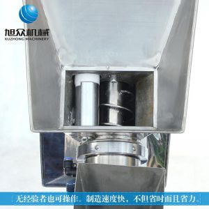 名稱JGB-120-5B型餃子機 電源220/380V(見機器名牌) 功率2.2kw(220V)1.5KW(380V) 產量7200個/小時 尺寸外形尺寸770*460*1190mm 重量200kg 規格15-20克/個 其他
