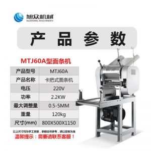 名稱60型全自動壓面面條機 電源220v 功率2.2kw 產量60kg/h 尺寸800*500*1150mm 重量120kg 規格 其他