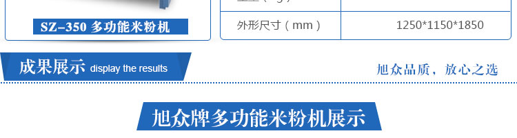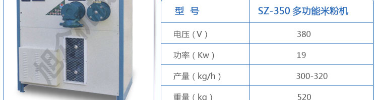 名稱SZ-350多功能米粉機 電源380V 功率19kw 產量300-320kg/h 尺寸1250*1150*1850mm 重量520kg 規格 其他