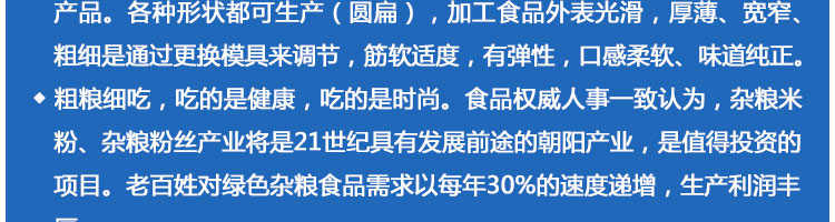 SZ-350多功能米粉機,生產多樣性可生產米粉、米線、粉絲、粉條、、年糕、玉米面條、各種雜糧粉絲、各種面條、雜糧面條、彩色面條以及以紅薯、玉米、大豆、蠶豆等制成淀粉為原料的等多種食品而且每種食品厚薄、粗細等規格可根據需要任意調整。