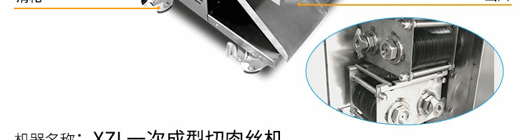 名稱XZL一次成型切肉絲機 電源220V 功率2200W 產量400kg/h 尺寸570*570*900mm 重量105kg 規格 其他