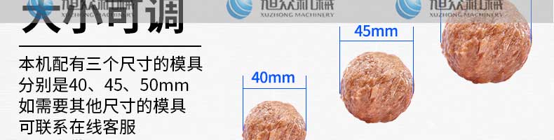 XZ-605S肉丸成型機,大直徑肉丸成型機,主要生產大肉丸、獅子頭等可訂做30-60mm的規格。輕松做好美味丸子解放雙手,輕松享受創業財富!
