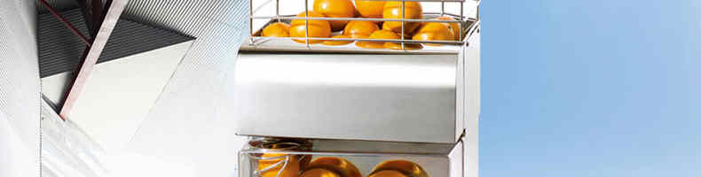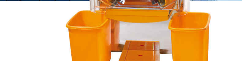 2000E-4自動榨橙汁機(jī),該機(jī)設(shè)計(jì)合理,采取擠壓式,鮮橙經(jīng)消毒、漂洗后,直接進(jìn)入機(jī)器 ,自動剝皮、榨汁、過濾,現(xiàn)榨現(xiàn)飲,不僅適用于小飲店、水果店、飯店、賓館、酒吧、卡廳、茶秀、咖啡屋等,也適用于成功人士的家庭使用。
