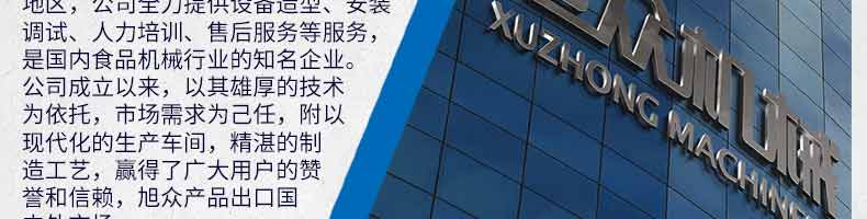 廣州旭眾食品機械有限公司是一家集科研開發,生產設計,營銷服務為一體的現代化生產企業。現代化生產車間,精湛制造技術,所產機械歷經市場重重考驗,不斷贏得海內外客戶的贊譽。