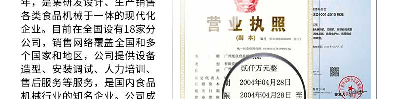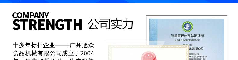 廣州旭眾食品機(jī)械有限公司是一家集科研開(kāi)發(fā),生產(chǎn)設(shè)計(jì),營(yíng)銷(xiāo)服務(wù)為一體的現(xiàn)代化生產(chǎn)企業(yè)。現(xiàn)代化生產(chǎn)車(chē)間,精湛制造技術(shù),所產(chǎn)機(jī)械歷經(jīng)市場(chǎng)重重考驗(yàn),不斷贏得海內(nèi)外客戶的贊譽(yù)。